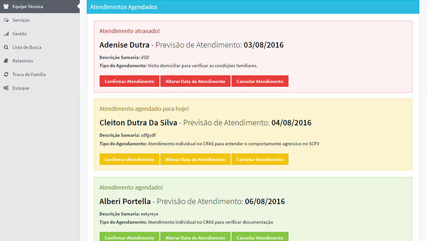 Atendimentos individualizados e coletivos; Visitas Domiciliares; Famílias atendidas; Famílias acompanhadas; Agenda técnica; Referência e Contra Referência; SCFV; Grupos PAIF; Ações comunitárias; Benefícios eventuais; Plano de acompanhamento Familiar; Plano individual de atendimento – PIA. Importações e correlação entra informações